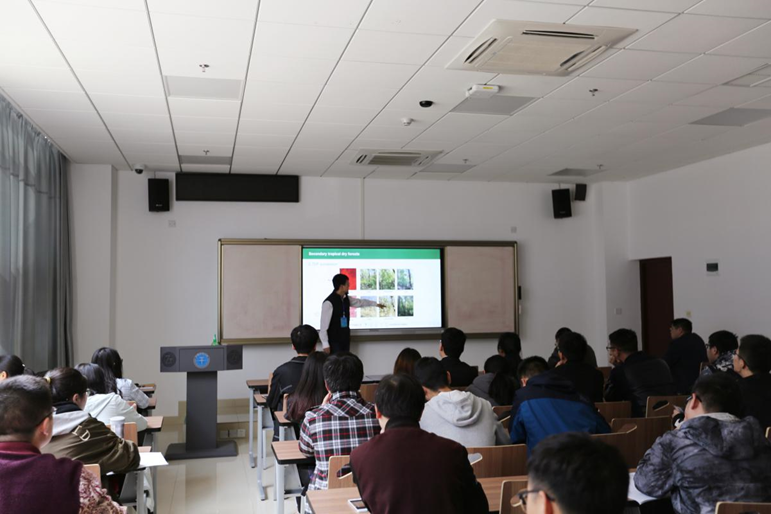 曹森,加拿大阿尔伯塔大学博士后,研究领域为生态遥感。他的报告题目是《热带干旱次生林主要生物化学和生物物理过程的遥感研究》,在报告中,他提到了森林与全球变暖的关系,他的研究主要关于如何识别干旱森林以及森林的年代,如何对热带干旱次生林的生产力进行评估等。